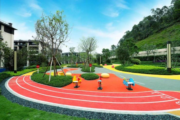 在倚云台的全龄儿童活动区中,沙池、赛车道、跑道、攀爬网、草坪······通通备齐,让亲子时光更加简单、愉悦。