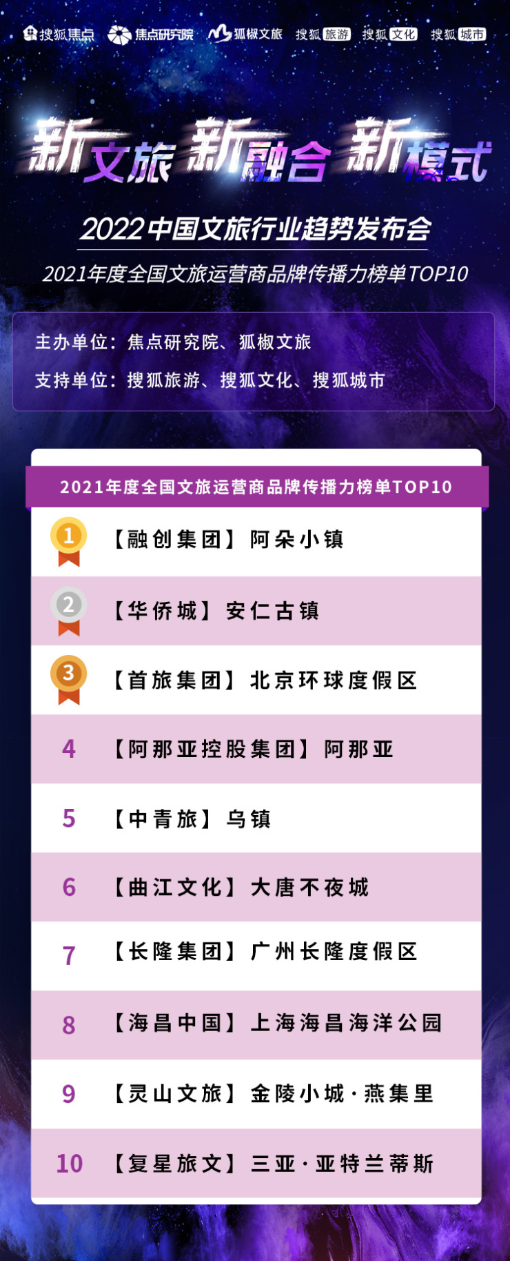 权威发布|2021年度全国文旅运营商品牌传播力榜单TOP10