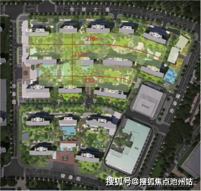 • 全龄户外健康乐动系统,约500米跑道/篮球场/双羽毛球场/大型儿童游乐场/萌宠乐园等