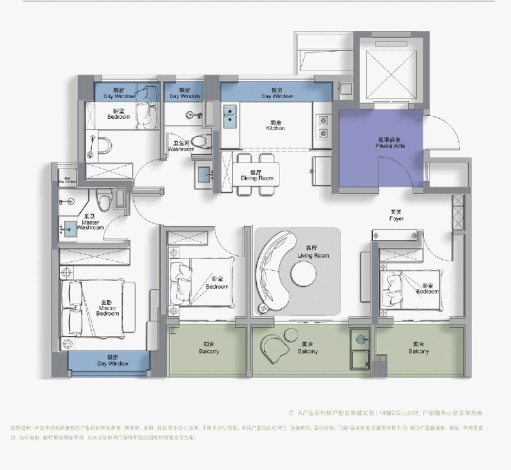 尺度感上:这是新政后松江板块首个 四开间朝南、且不封阳台的三阳台 户型。