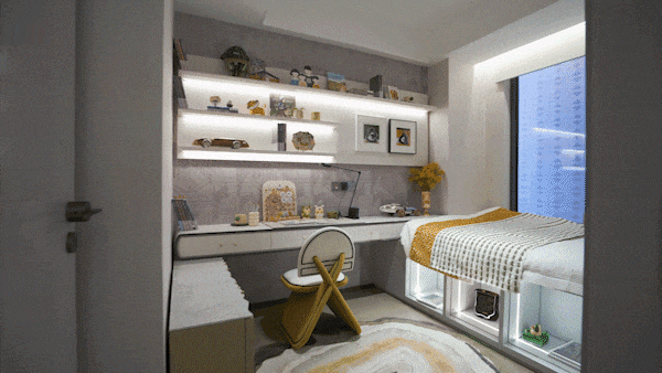 尤其是北次卧, 面积约9㎡,几乎对标同类竞品的主卧大小了,结合北向景观飘窗,视觉上增加室内通透度,提升空间利用率。