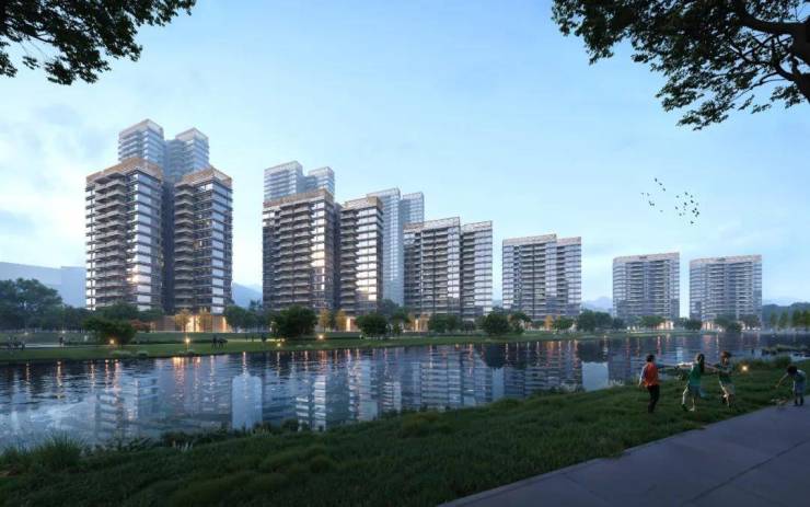 双泳池会所,9m层高酒店式大堂。北面火炉山、东面杨梅河、南面大观湿地公园。