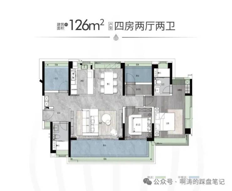 【户型面积】建面约125-142㎡四房两厅两卫/214-319㎡大平层