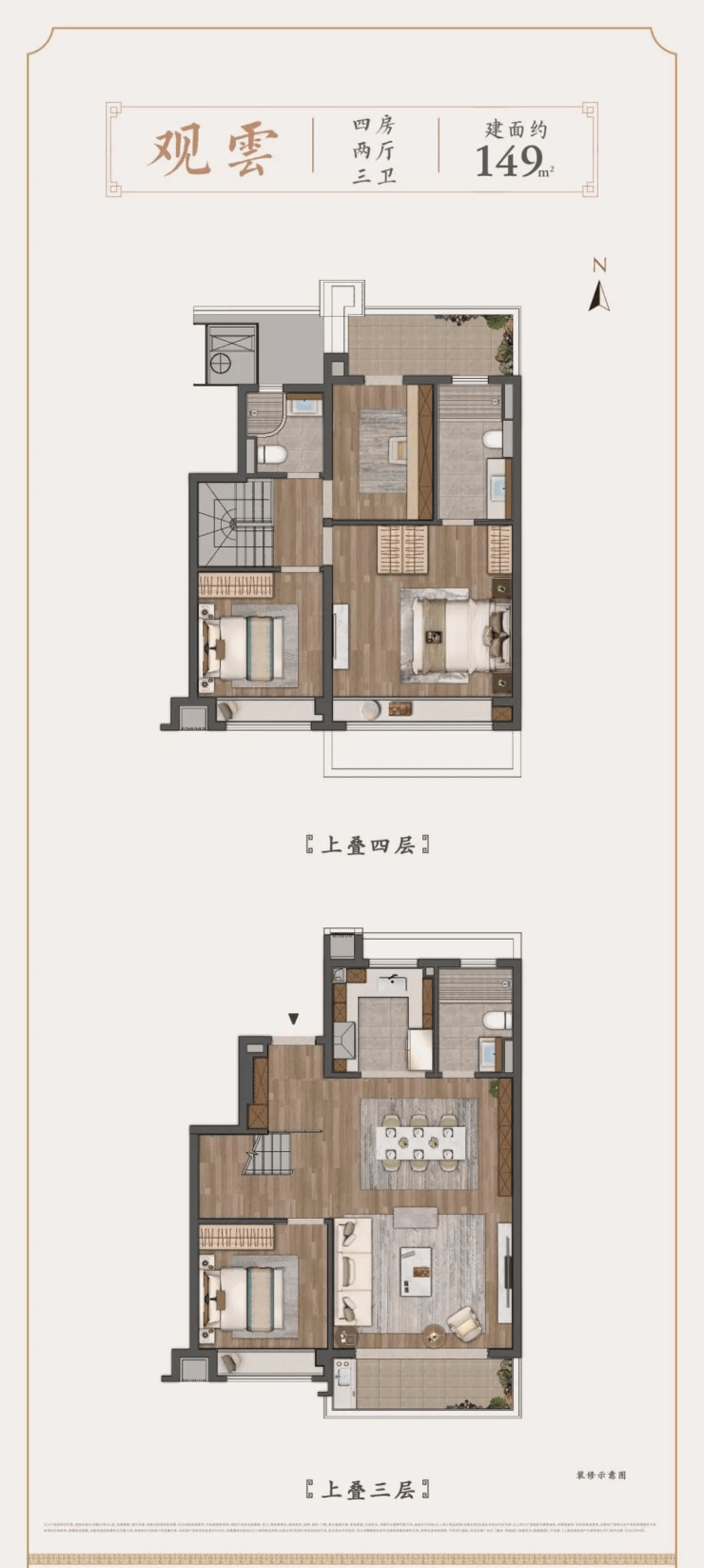 户型方面,建发观唐府凸显两个优势:设计优秀以及户型种类多,选择面大。项目推出户型为约180㎡4房高层、约147-175㎡叠墅。