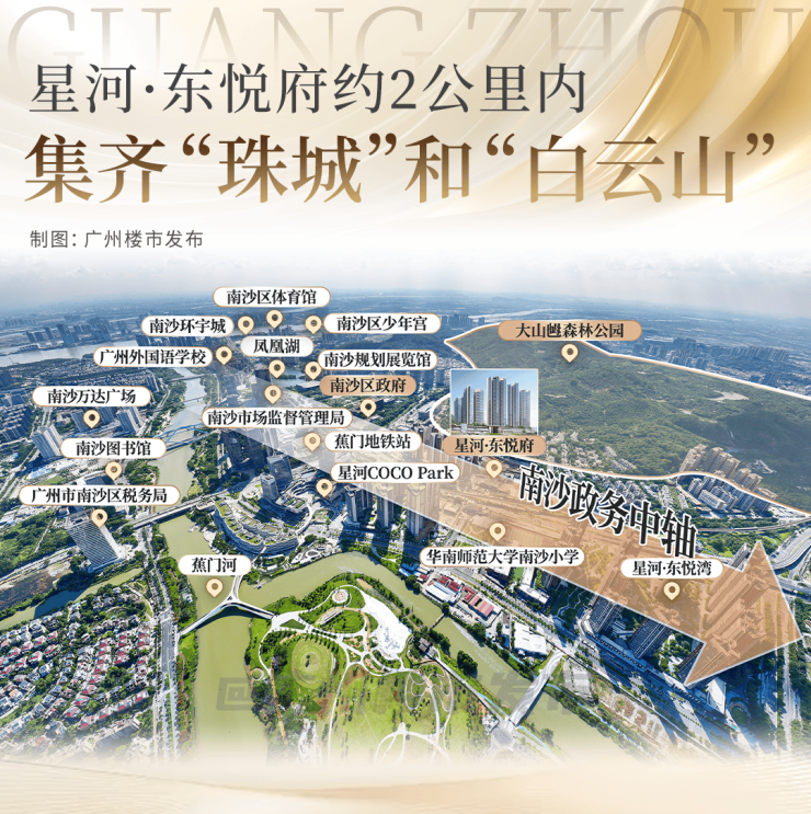 南沙也用超过 十年成就了自己的中轴,便是星河·东悦府所在的 “政务中轴”。
