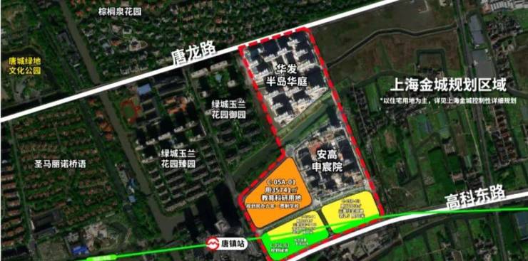 这地块属于唐镇核心地块,算是唐镇地铁上盖项目,与2号线唐镇站直线距离不到300米,南侧紧贴着高科东路。