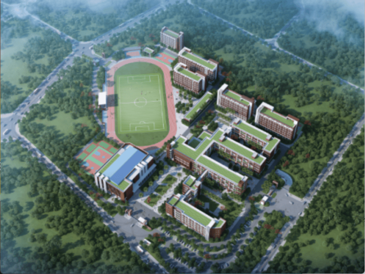 校区内含初中部教学楼、高中部教学楼、综合楼、食堂