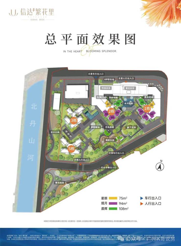 信达·繁花里一共规划4栋住宅,1、2、3栋是2T5设计,5栋是2T4 ,总高32层。