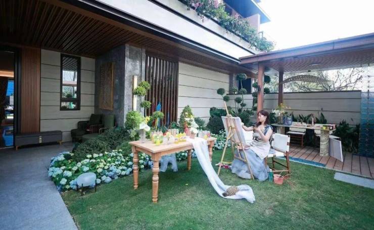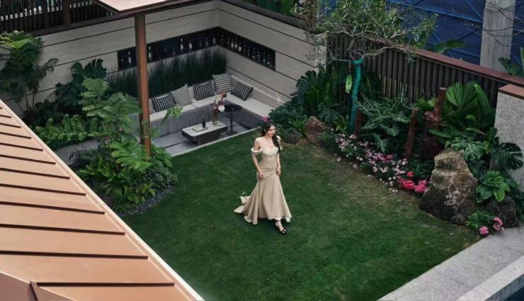 约50㎡的艺术的庭院是的B户型的点睛之笔,是在空间设计紧凑的前提下公区尺度的进步一放大。