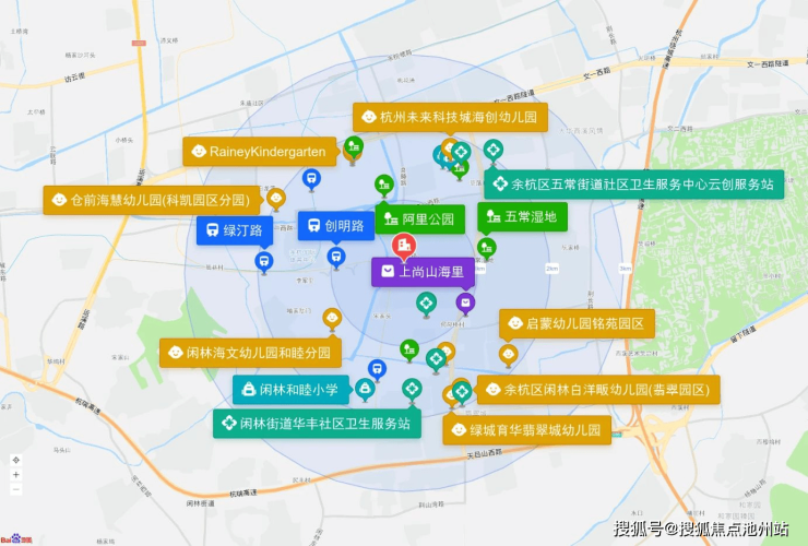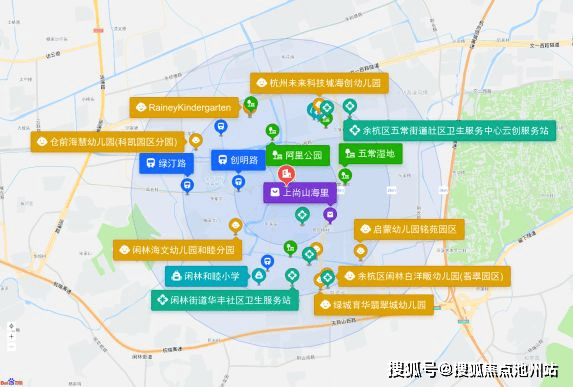 直线3km范围内有22个幼儿园;10个小学,如杭州师范大学附属学校、未来科技城第三小学、杭州未来科技城海创小学、闲林和睦小学、五常中心小学(西溪校区)等;4个中学:蔚澜学校、浙江中华文化学院、杭州师范大学附属学校、余杭区海辰中学。