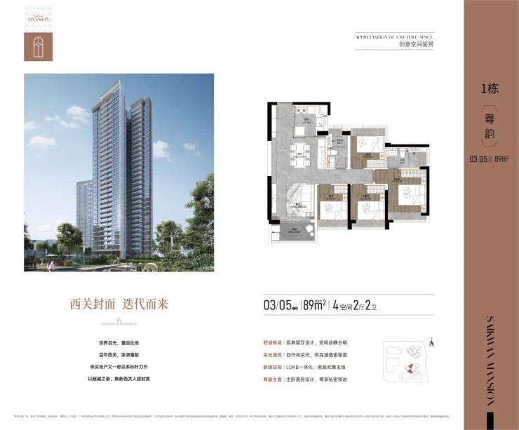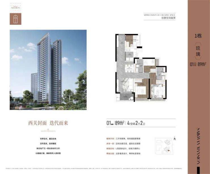 主推建面约89-121-142平4-5房,是西关唯一的100%纯四房起步社区、唯一100%使用率户型、100%N+1房设计。