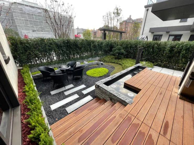 庭前绿地的面积有约40-60㎡,不管侍弄花草、晒晒太阳,抑或叠山理石,都足够了。