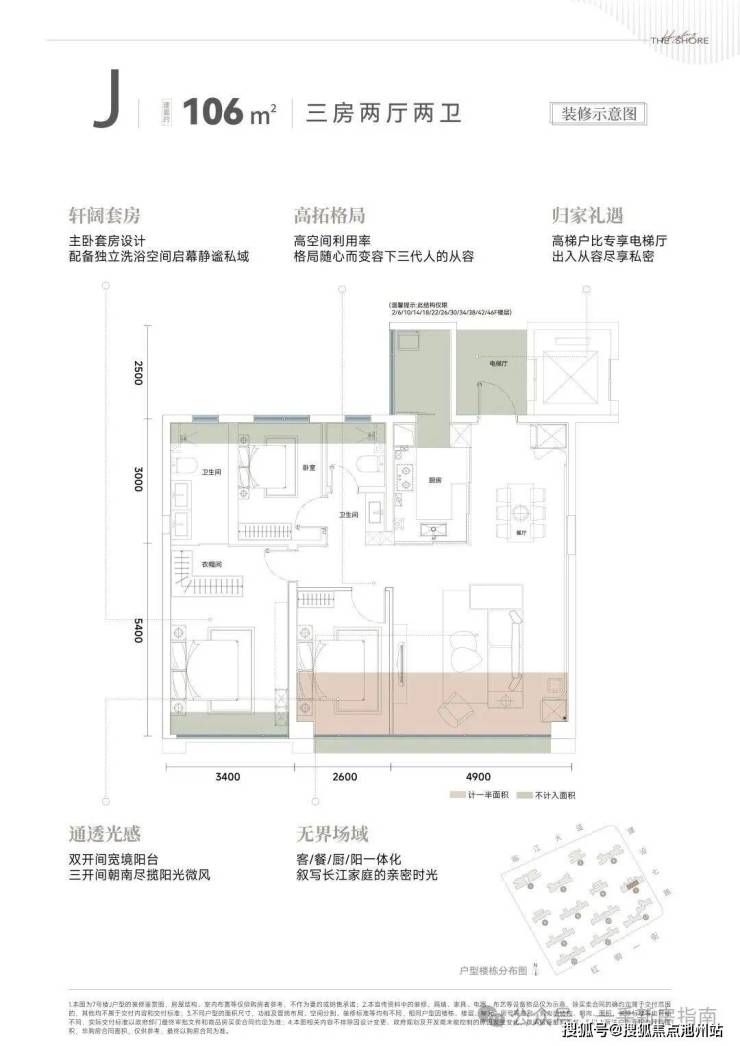 爆款106㎡三房,多处露台、阳台、飘窗等丰富拓空间,实现了得房率约94%,是区域唯一最低门槛滨江四代三房产品。