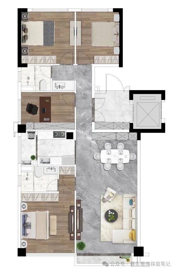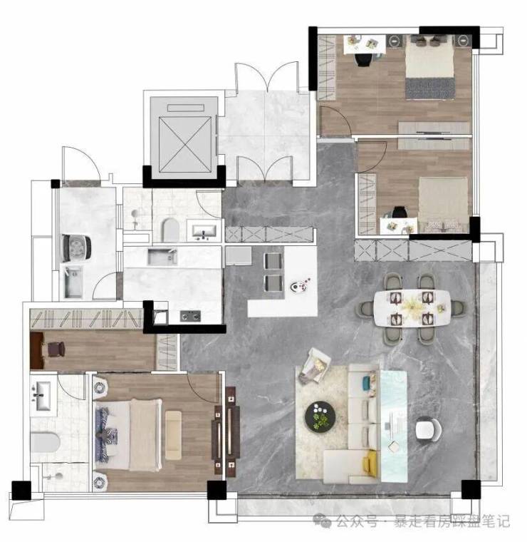 【E2#江境·A户型】建面约166㎡ 四房两厅三卫