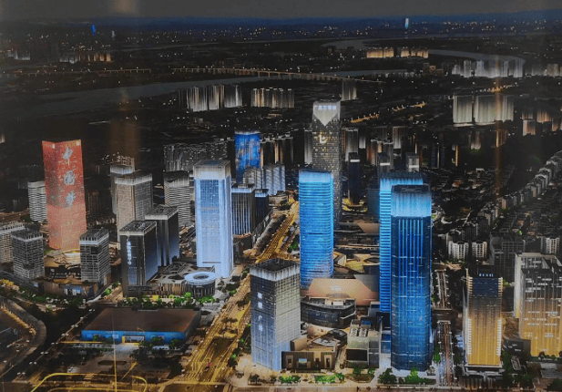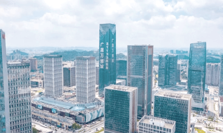 建筑组团由A、B、C三栋塔楼、裙楼和商业街组成,汇集办公、酒店、商场、LOFT等多种业态。其中, A 塔楼(又名“晟峰”)楼高约266米,共57层,正式交付使用于2024年,是目前番禺区的最高建 筑。