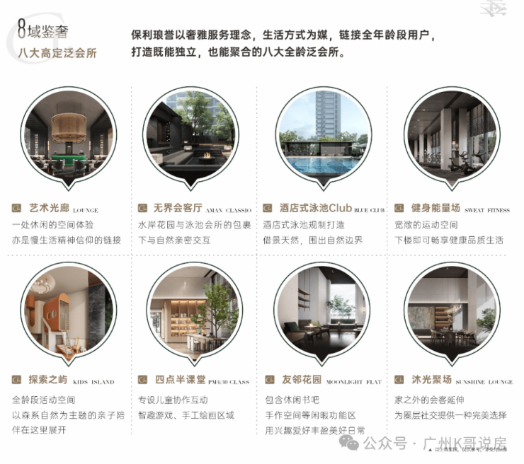 其次,保利琅誉更将雅奢的服务理念,也植入到了业主的圈层生活中。项目一口气打造8大泛会所,形成了业主们的「第三空间」,包括行政酒廊、酒店式泳池CLUB、友邻会客厅、健身能量场、创识学堂、轰趴馆等不同的功能区。