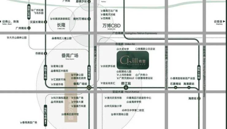 项目位于番禺广场板块,楼盘就在番禺客运站北侧,龙湖金地天峯旁边。