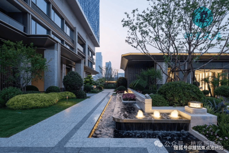 作为板块内首个采用“空中花园”的住区,潮语臻境府将高层整体抬升约5米,抬板与地面之间的架空层作为首层车库,抬板之上则是主题景观与会所空间的生活场景体验,约280㎡中心泳池与1000㎡中央草坪串联成景观轴,打造成“中央花园”。