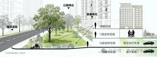 借鉴上海安澜抬板理念,启园将社区首层整体抬升3.15米:板上是纯粹的花园漫游系统,老人散步、孩子奔跑,无车辆打扰,四季风景如画;板下是高效车行归家系统,阳光泊车、天光车马院、架空层会所一应俱全。