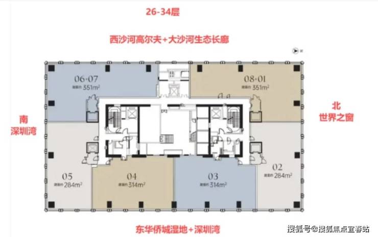 东向永久无遮挡华侨城湿地公园景观,南向局部看海,西向局部看高尔夫,北向看世界之窗人文景观!