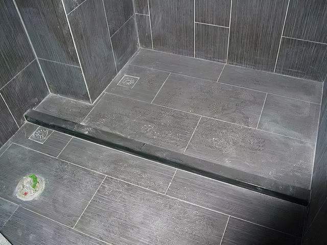 我们在做淋浴房的时候要注意一下,做淋浴房要做挡水条,在做挡水条的时候一定要和瓷砖一起铺进去,卡在瓷砖里面,并不是在铺完砖以后用胶粘在上面。还有一个就是我们要留两个地漏的位置,一个在淋浴房内,一个在淋浴房外。铺瓷砖的时候他这个较低点是两个啊,一个在淋浴房,一个整体的卫生间地漏处!