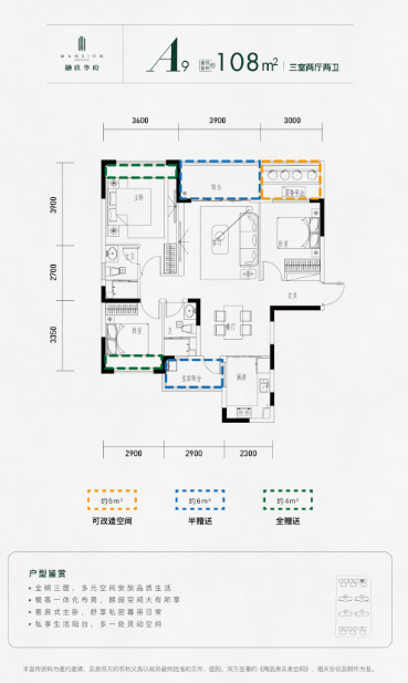 A9/A10建面约108㎡三室两厅两卫