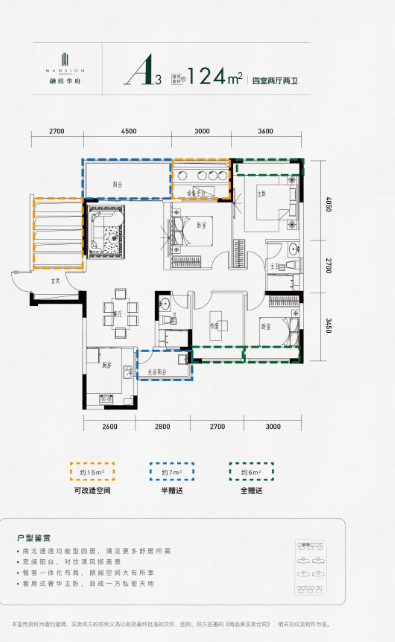 A3建面约124㎡四室两厅两卫