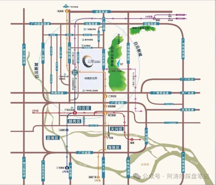 2.2号线直达广州火车站、广州南站、3号线5站即达白云国际机场、14号线连通白云及从化,未来更可直达清远、中山、珠海等地