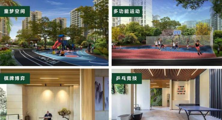 邻里社交,户外运动:社区商业、多功能运动场地、康体健身、休闲步道、游泳池、幼儿园等配套一应俱全;