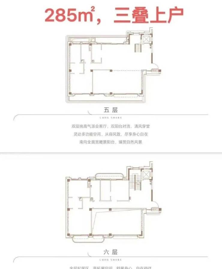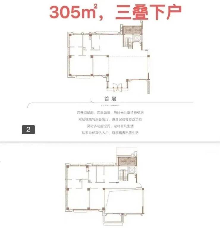 下叠面积为305㎡,首首层花园面积区间约为233-517㎡,实用率238-355%;三叠户型最高可做到6房。