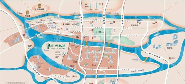 ③2018年2月24日国规委发布主城区范围,洛溪岛纳入主城区核心地段,同时广州中轴南移至洛溪岛,形成广州塔、珠江新城城市中轴景观;
