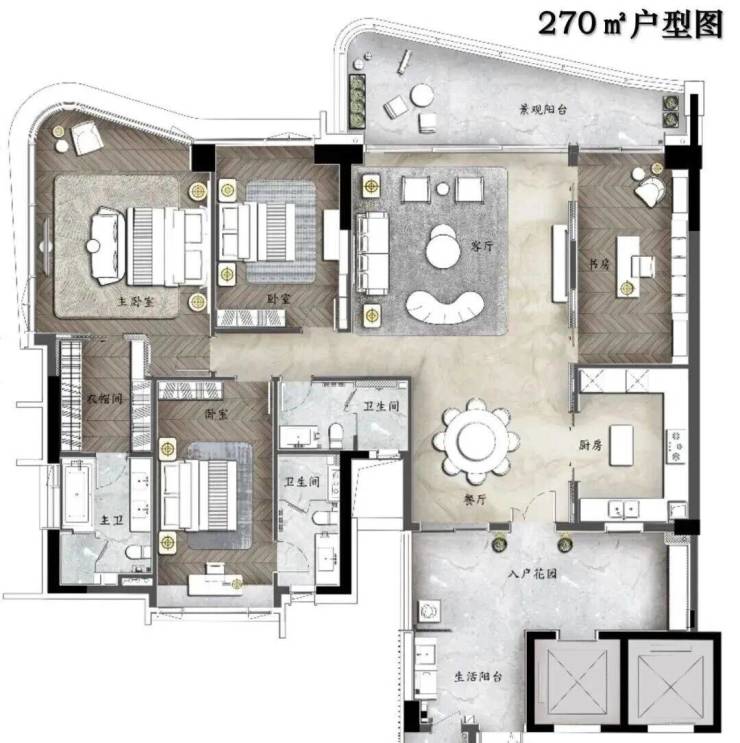 【洋房户型】140㎡-270㎡四房双主套