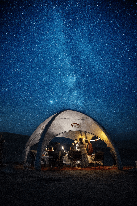张静介绍,沙漠露营的日间和夜间分别能观赏到不同氛围的美景,夜间露营是沙漠露营的重要,看星空、赏银河属于夜间常规项目,真正让来到这里的人们感受到远离光污染、原比例工业化、远离城市压力的放松和愉悦之感,回归自然,回归本真,真正触摸大自然,享受心灵的暂时防空,享受酣畅淋漓的快意人生。