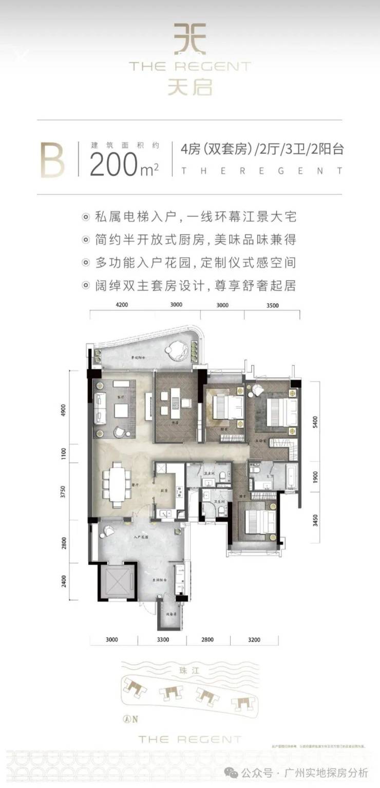 天启大平层:140-480㎡环幕江景现房,270°无遮挡视野,专梯专户,国际一线品牌交标(如劳芬卫浴、大金空调)。