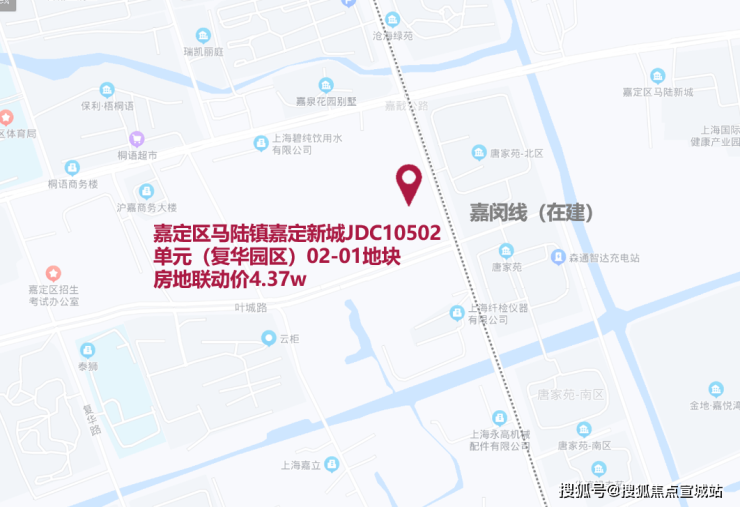 「众禾嘉苑」即2022年二批次土拍地块嘉定区马陆镇嘉定新城JDC10502单元(复华园区)02-01地块,项目由大众以12.4亿元总价竞得,楼板价22364元/㎡,溢价率9.09%。房地联动价4.37万/㎡。