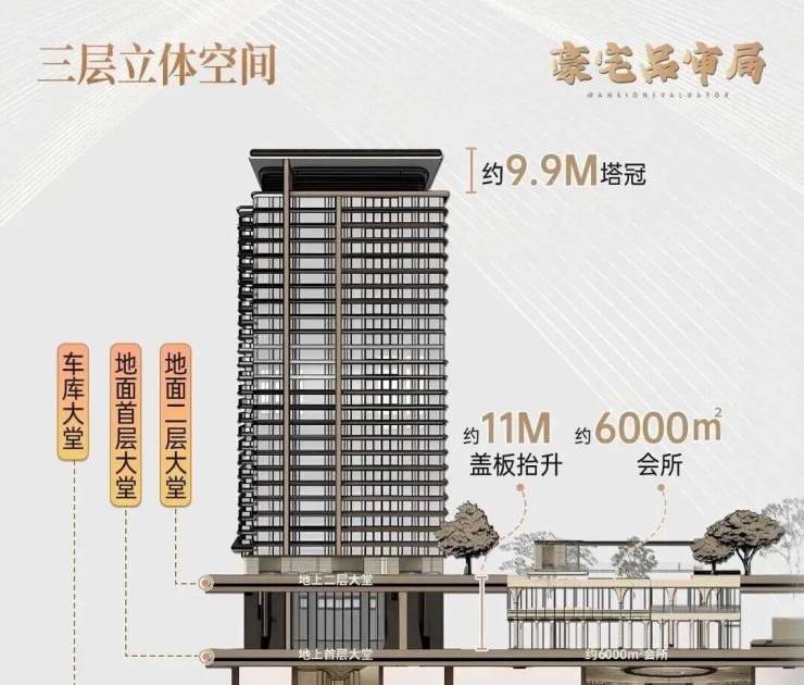 会所通过峡谷庭院,回廊景观串联,与地面层大堂相连,会所及大堂配套总面积超过1万㎡。实现了“接待-社交-归家”的全场景覆盖,是豪宅产品的一次重大突破。