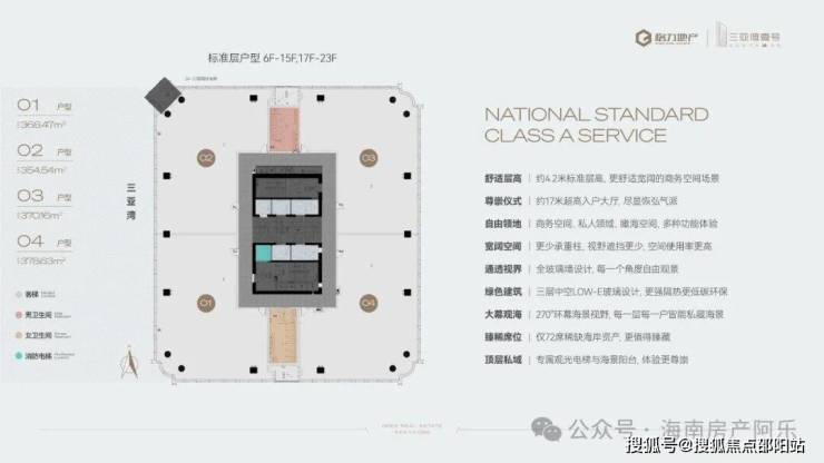 三亚湾壹号,打造约120米高、270°稀缺海景写字楼。呈现三亚市内首个商业上盖“日不落观海大道”,近距离感受海上醉美日落的商办生活中心,380米超长集中式商业巨舰展示面点亮城市日与夜,三亚湾壹号,以城市风貌更新共创者的身份,与三亚同创共新。
