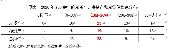 从总资产和总负债数据来看,2020年有很多房企的总资产规模扩张速度在下降,同时越来越多的房企主动优化财务质量,如控制债务增长,通过上市或者配股等形式增厚所有者权益等。