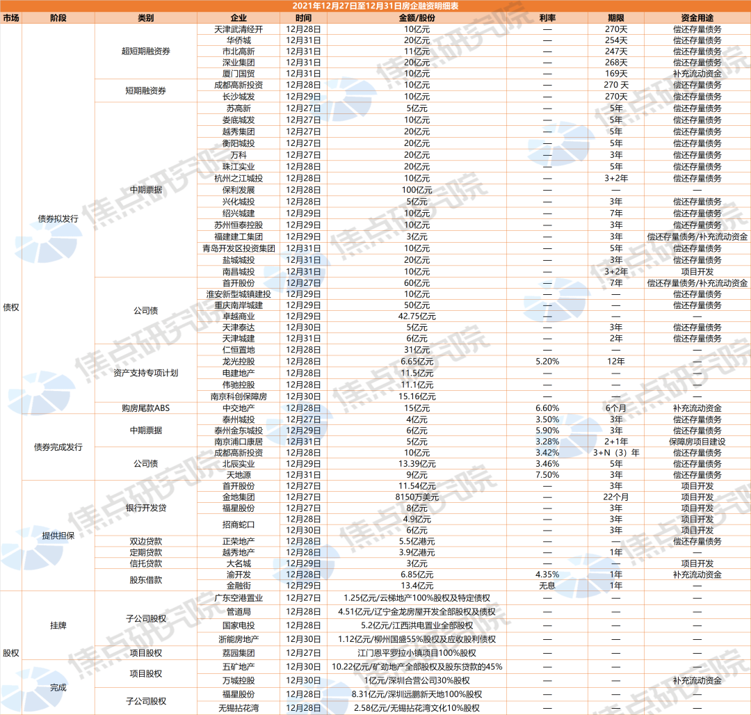 根据焦点研究院统计数据显示,本周在债权市场,房企各类融资券、中期票据、公司债和资产支持专项计划拟发行数量达到34笔,总金额共计628.2亿元;实际完成发行数量6笔,总金额共计47.4亿元。整体来看,随着近期融资监管边际放松房企发债热度居高不下,不少企业在窗口期密集发布债券融资计划。从企业性质来看,国企、央企和地方城投公司仍为发行主力军,但随着先进商业42.75亿元小公募获深交所受理,天地源完成发行9亿元公司债,民营房企也迎来融资边际宽松契机。
