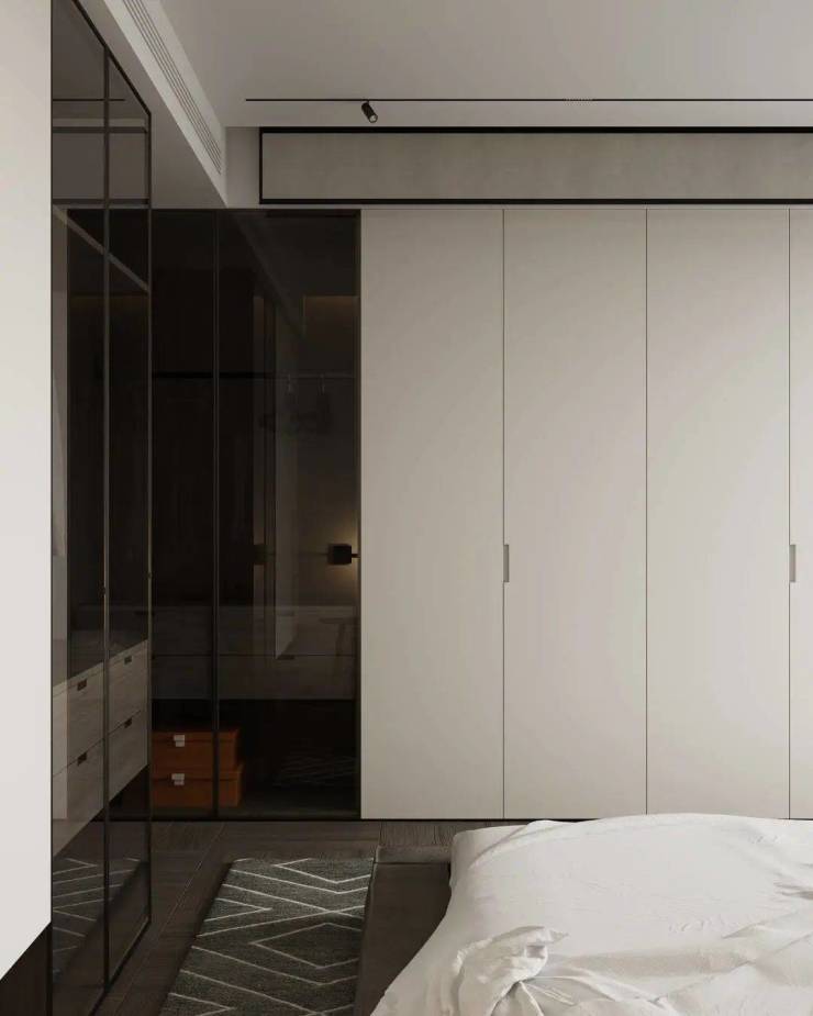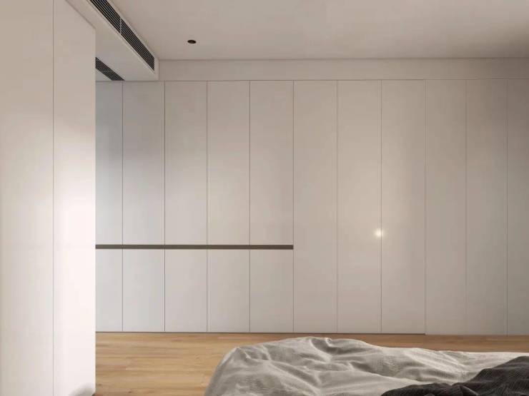 在寸土寸金的都市中,入墙式衣柜也成了不少家庭的宠儿,其不仅让空间利用率高,而且加强的空间的整体感,让卧室空间与柜体的融合更为紧密,选择无拉手衣柜,则可以达到更高的融合,更为时尚美观。