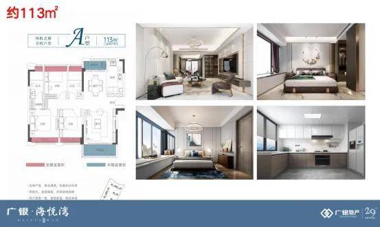 广银海悦湾占地面积约2.3万㎡,建筑面积约7.8万㎡,共有8栋住宅,为2梯4户18层高小高层,总户数520户!目前项目主推建筑面积为89-113㎡户型,精装修,现楼