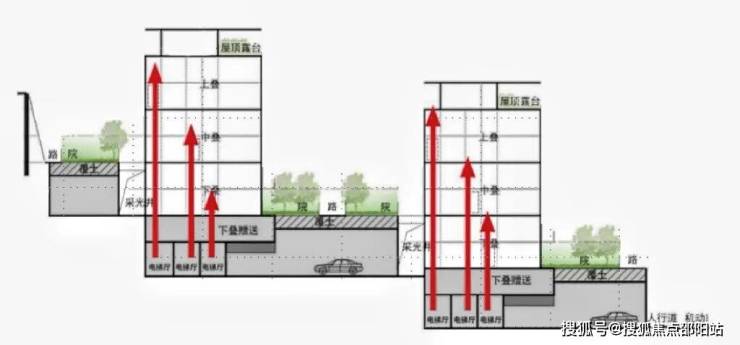 叠墅产品:屋顶用金属框架,身段利用真石漆、铝合金脚线、深色涂料、金属格栅打造,和谐之间彰显品质。