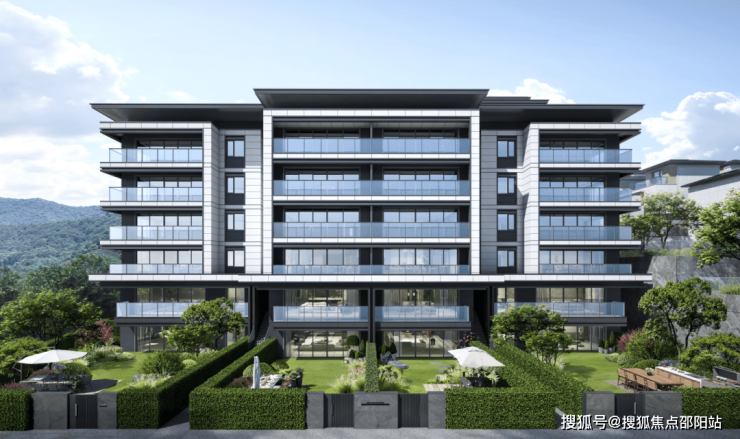 约3-6米高差,打造70层级退台设计,让瞰景视野无遮挡;用线条将立面组织成有机整体,错落有致,与山体相映成趣。