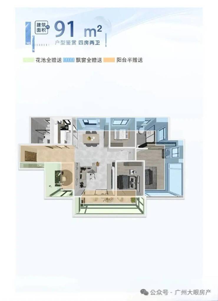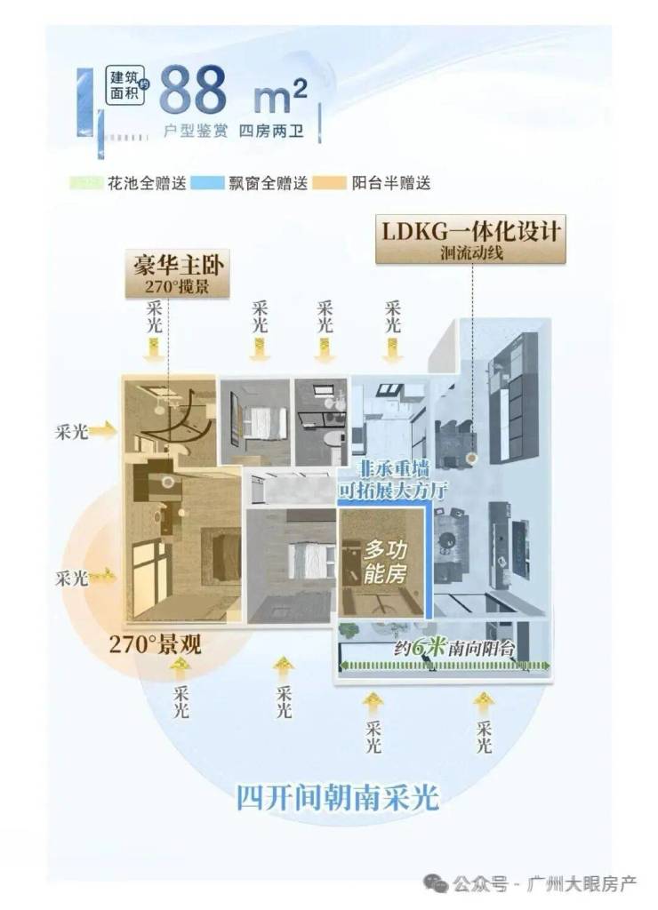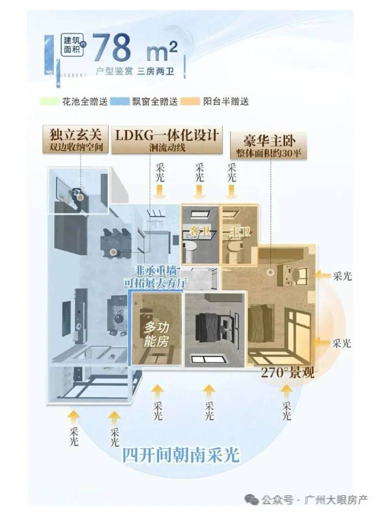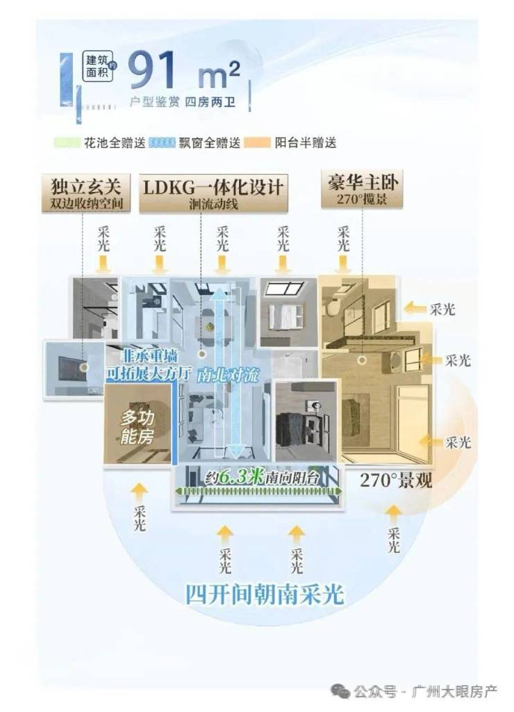 户型设计在保留新规产品优势基础上,又对产品做了一次全新升级:广州首创“0飘窗”,约120%高使用率,见证小户型的「越阶改善」