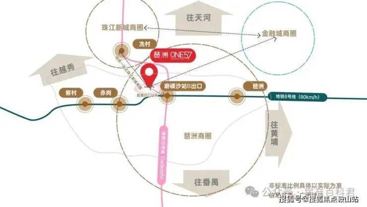 琶洲ONE57位于广州海珠区琶洲CBD核心地段 该区域是广州三大核心CBD之一 与珠江新城CBD和金融城CBD共同构成黄金经济圈 其地理位置极具价值 项目周边集聚总部经济 金融创新和科技产业 吸引众多国内外知名企业入驻 形成了强大的经济辐射效应 交通方面 紧邻地铁8号线和18号线 其中磨碟沙地铁站近在咫尺 一站即可到达珠江新城核心商圈 便捷的交通体系为商务人群和高端租赁市场提供了稳定支撑 区域内道路规划完善 无论是通勤还是商务出行 都能享受到高效的城市交通网络
