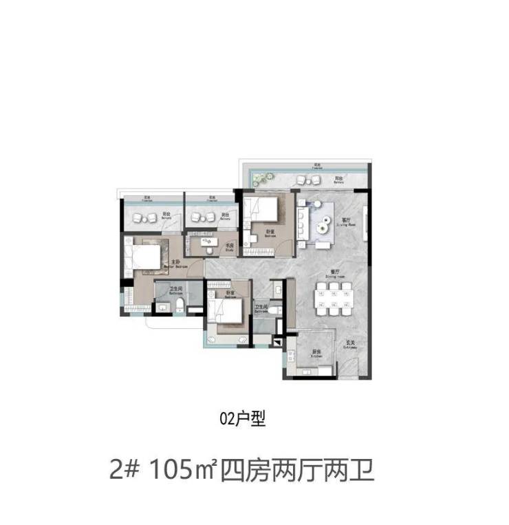 105㎡和107㎡四房是主力户型,做到了四空间布局,即使是紧凑面积也能满足多成员家庭需求,LDK一体设计让公共区域更显开阔,部分户型带有270°飘窗拓展空间 。