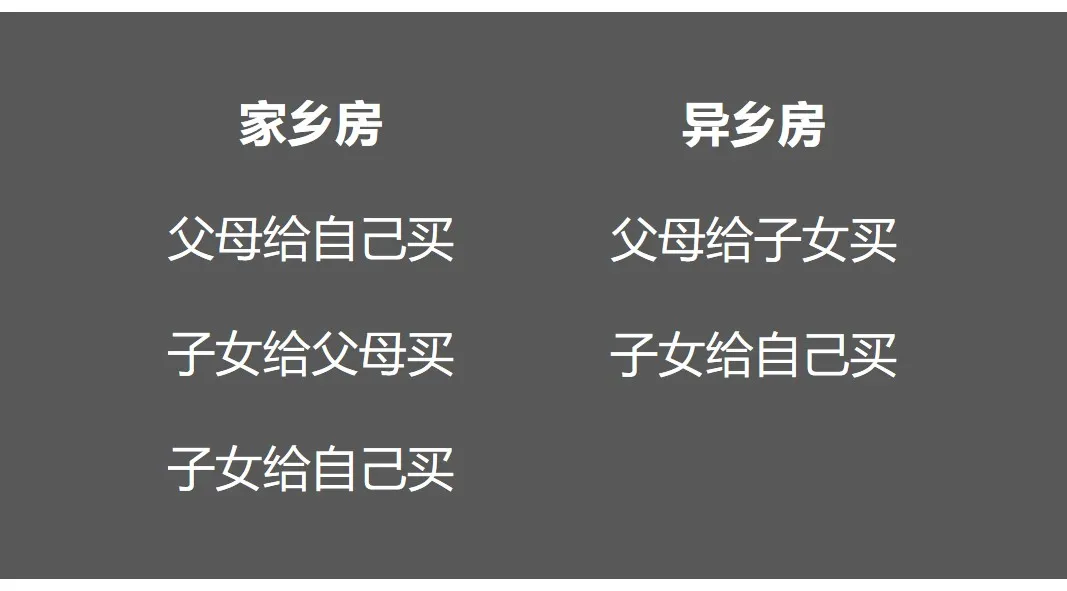 返乡置业和异地定居,基本上是这样的一个购房关系: