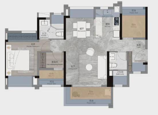 三期新品堪称“空间魔术师”——使用率突破100%,部分户型高达107%,在限墅令与新规收紧的当下实属罕见。以84㎡三房为例,通过阳台、飘窗、结构板等合法赠送,实际得房面积超90㎡,相当于多出一个主卧。全系户型采用全南向布局,84㎡做到双阳台+U型厨房+南北通透;95㎡实现四房五开间朝南;119㎡更配置超长玄关、独立衣帽间、南北双景观(南园北湖)。尤其C1栋“瞰湖小楼王”,102㎡四房拥有豪宅级阳台与中央园林视野,空间尺度感媲美130㎡产品。这种“小面积大享受”的设计,精准击中刚需上车与改善置换的双重痛点,性价比拉满。