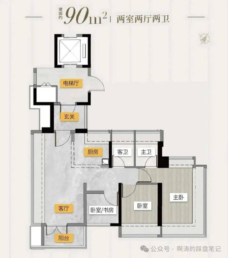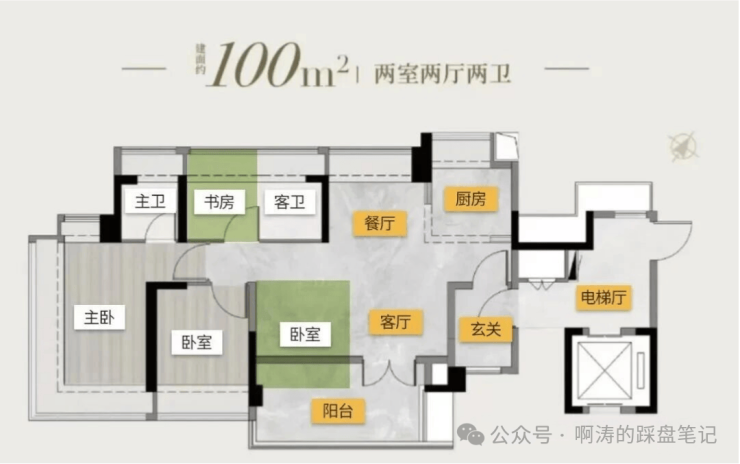 塔楼2T4设计,高25层,主推建面90、100平户型;