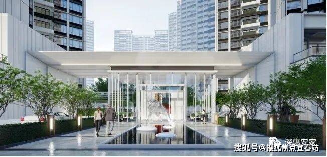 多功能社区艺术门厅,规划有会客空间、接待空间、菜鸟驿站、速易递和外卖存放区等空间,前庭后院双景观。